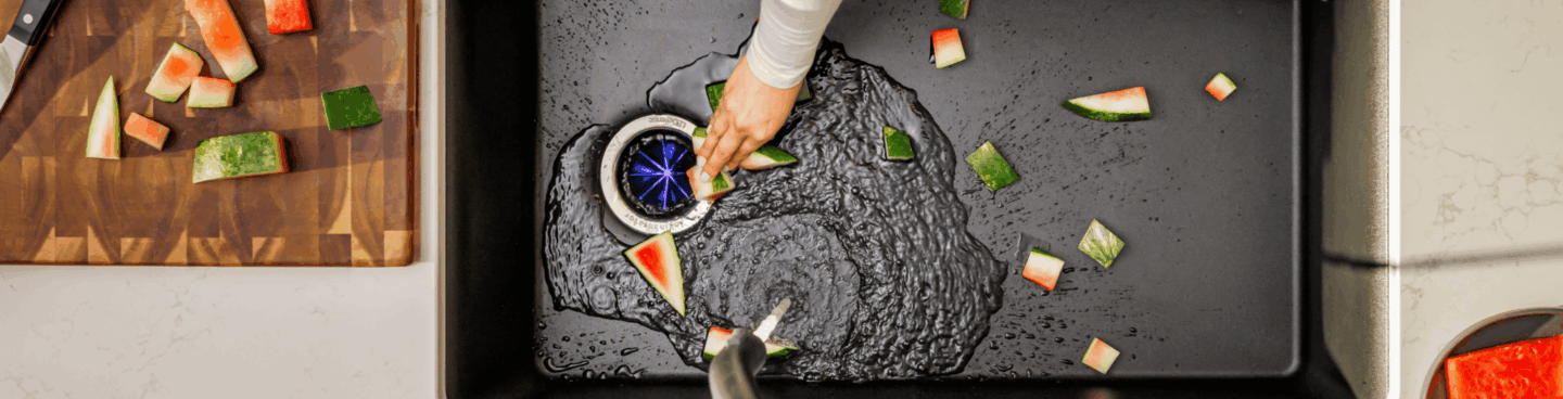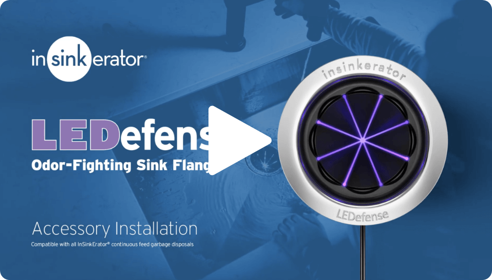 Stinky disposal? The new InSinkErator® LEDefense sink flange kills 99% of odor-causing bacteria* for a fresh, clean kitchen.